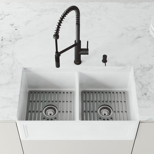 Becker 33" Fireclay Apron / Farmhouse Double Basin Kitchen Sink with Workstation