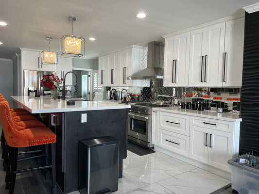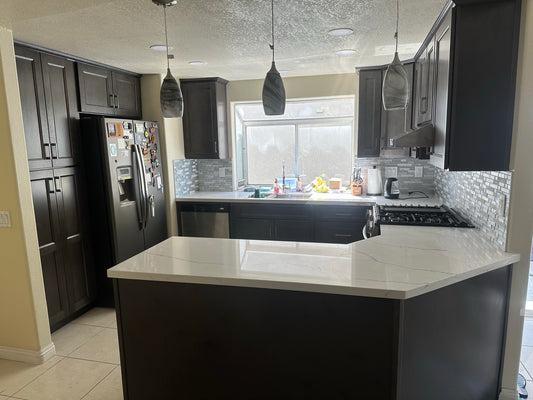 Love this vanity - it was easy to install and looks great. Slight gap in between the two cabinets, but we don't mind too much. The seamless sinks & countertop are beautiful. Drawer space isn't amazing, but the soft close features and deep cabinets make up for it
