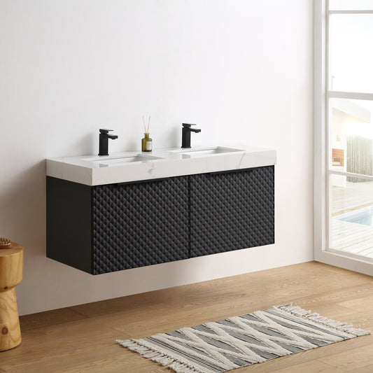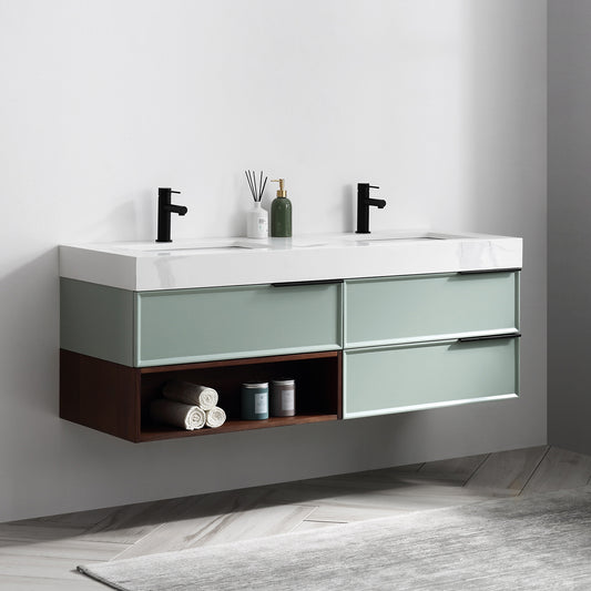 Lugano 55" Wall Mounted Bathroom Vanity with Reinforced Acrylic Integrated Sink Top