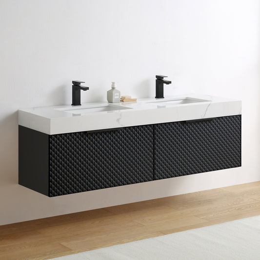 Marfa 60" Wall Mounted Bathroom Vanity with Quartz Top and Cermic Undermount Sinks