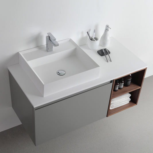 Manarola Open Shelf 42" Wall Mounted Bathroom Vanity with Premium Grade ATH Matte Solid Surface Top and Vessel Sink