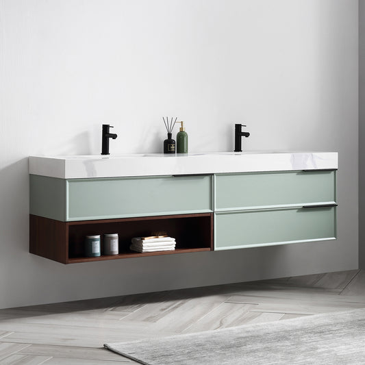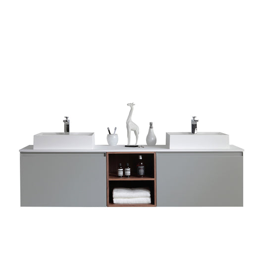 Manarola Open Shelf 72" Wall Mounted Bathroom Vanity with Premium Grade ATH Matte Solid Surface Top and Vessel Sinks