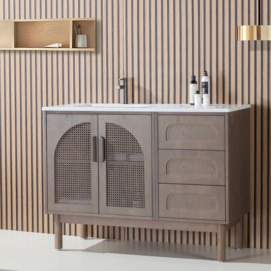 Nara 48" Freestanding Bathroom Vanity with Pure White Quartz Top and Ceramic Undermount Sink