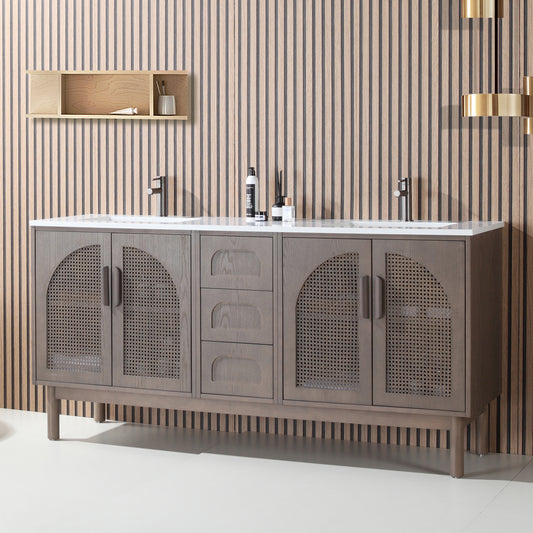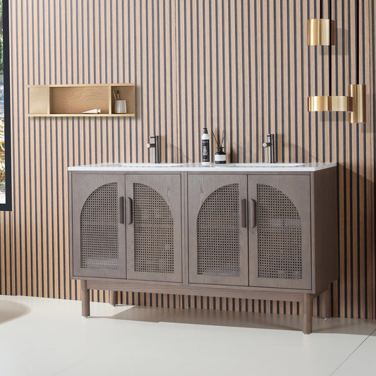 Nara 60" Freestanding Bathroom Vanity with Pure White Quartz Top and Ceramic Undermount Sinks