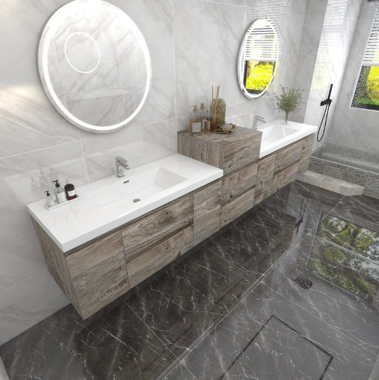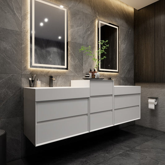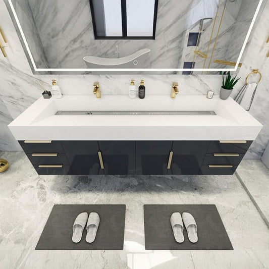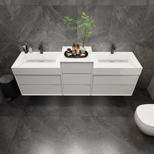 Bethany Double Drawer 72" Wall Mounted Bathroom Vanity with Reinforced Acrylic Integrated Sink Top