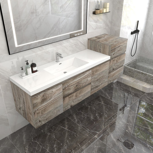 Max 140" Wall Mounted Bathroom Vanity with Reinforced Acrylic Integrated Sink Top and Linen Cabinet