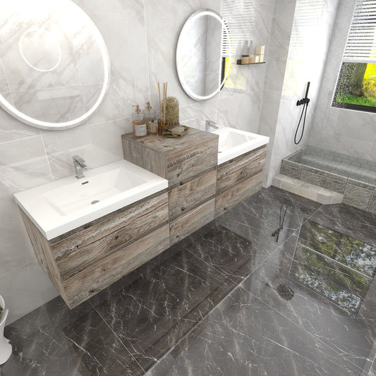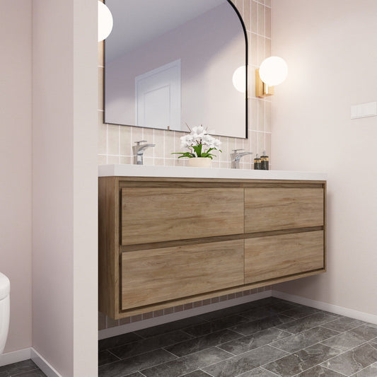 Sage Double 60" Wall Mounted Bathroom Vanity with Reinforced Acrylic Integrated Sink Top