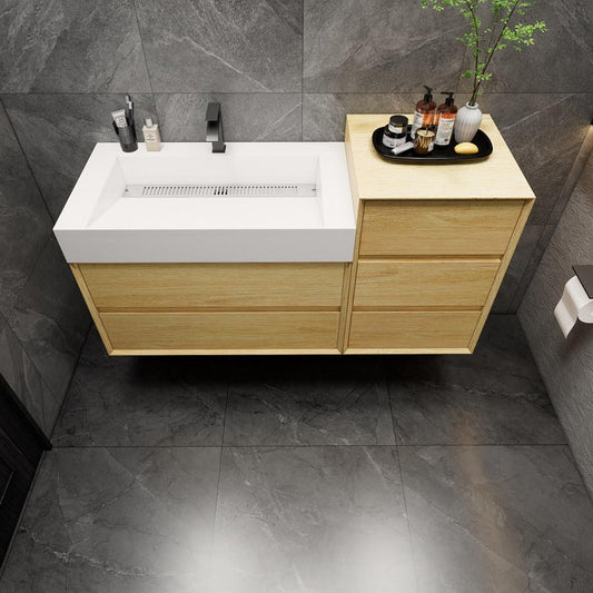 Max 104" Wall Mounted Bathroom Vanity with Reinforced Acrylic Integrated Sink Top and Side Linen Cabinet