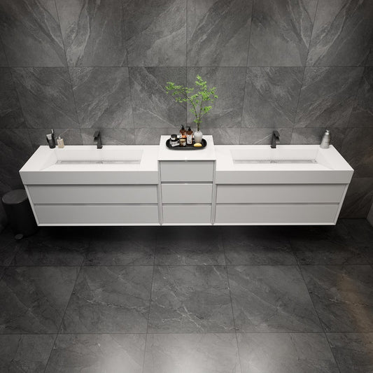 Max 92" Wall Mounted Bathroom Vanity with Reinforced Acrylic Integrated Sink Top and Center Linen Cabinet