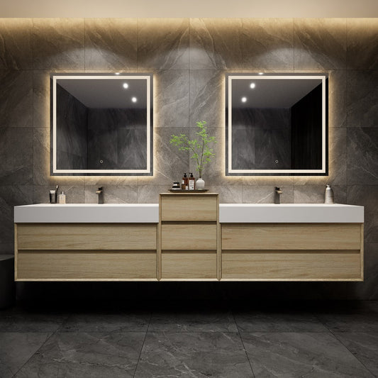 Max 104" Wall Mounted Bathroom Vanity with Reinforced Acrylic Integrated Sink Top and Center Linen Cabinet