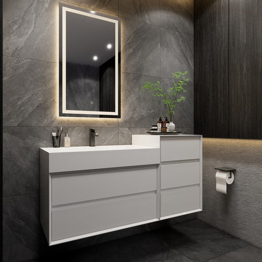 Bow 140" Wall Mounted Bathroom Vanity with Reinforced Acrylic Integrated Sink Top and Linen Cabinet