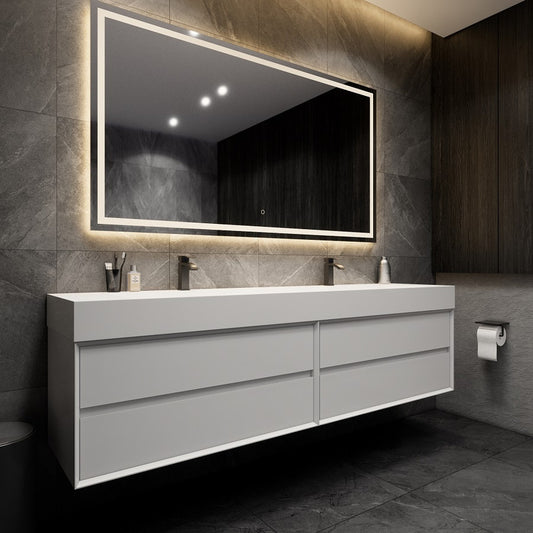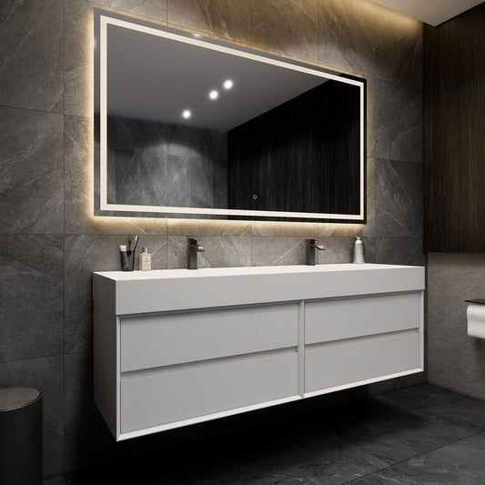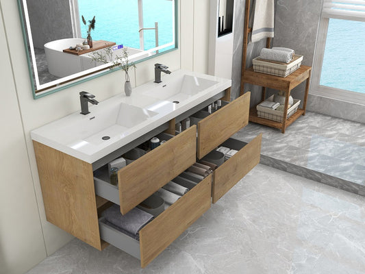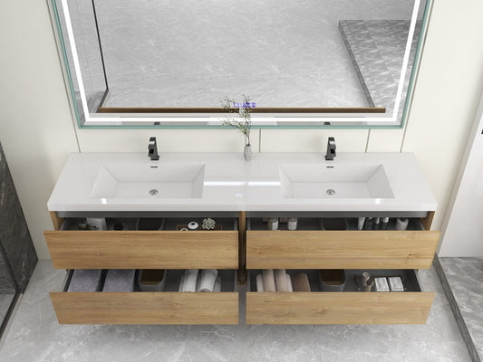 Kingdee 72" Wall Mounted Bathroom Vanity with Reinforced Acrylic Integrated Sink Top