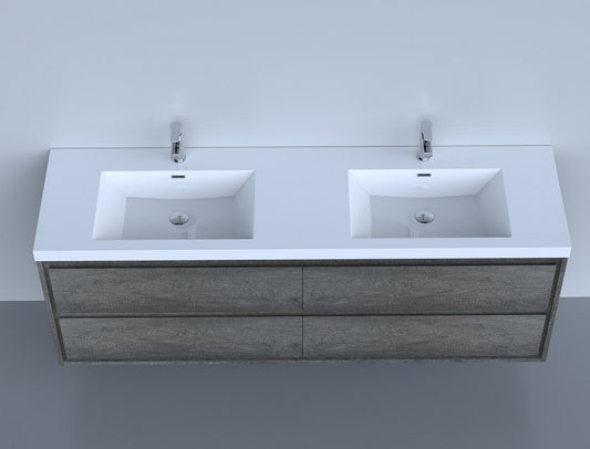 Floy 72" Wall Mounted Bathroom Vanity with Solid Surface Integrated Sink Top