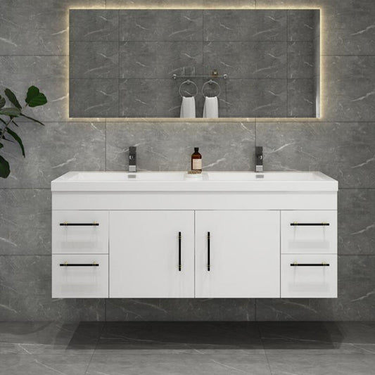 Lake 60" Wall Mounted Bathroom Vanity with Reinforced Acrylic Integrated Sink Top