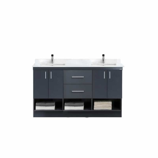 Himmel 60" Freestanding Bathroom Vanity with Carrara Quartz Top and Porcelain Undermount Sinks