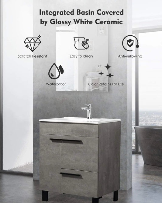 Sigge 30" Freestanding Bathroom Vanity with Ceramic Integrated Sink Top