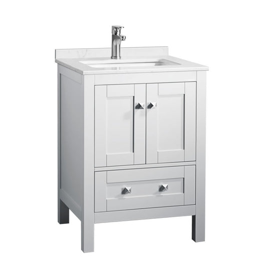 Elvin 24" Freestanding Bathroom Vanity with Carrara Quartz Top and Porcelain Undermount Sink