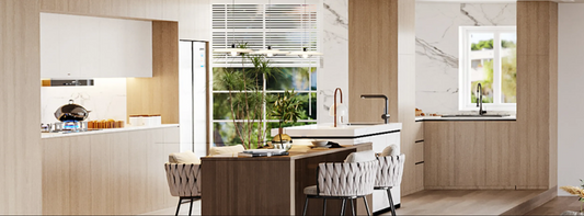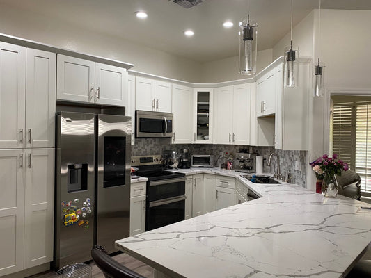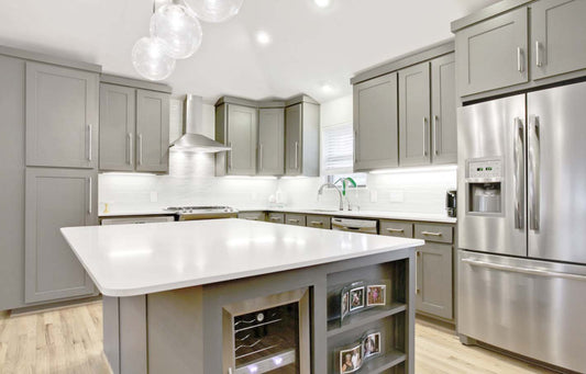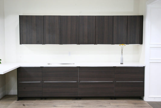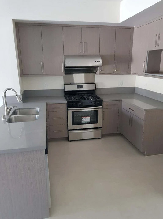 ALL kitchen cabinets are constructed with plywood boxes NOT MDF boxes. Plywood is a manufactured wood product made by gluing together thin layers of wood veneer (real wood).