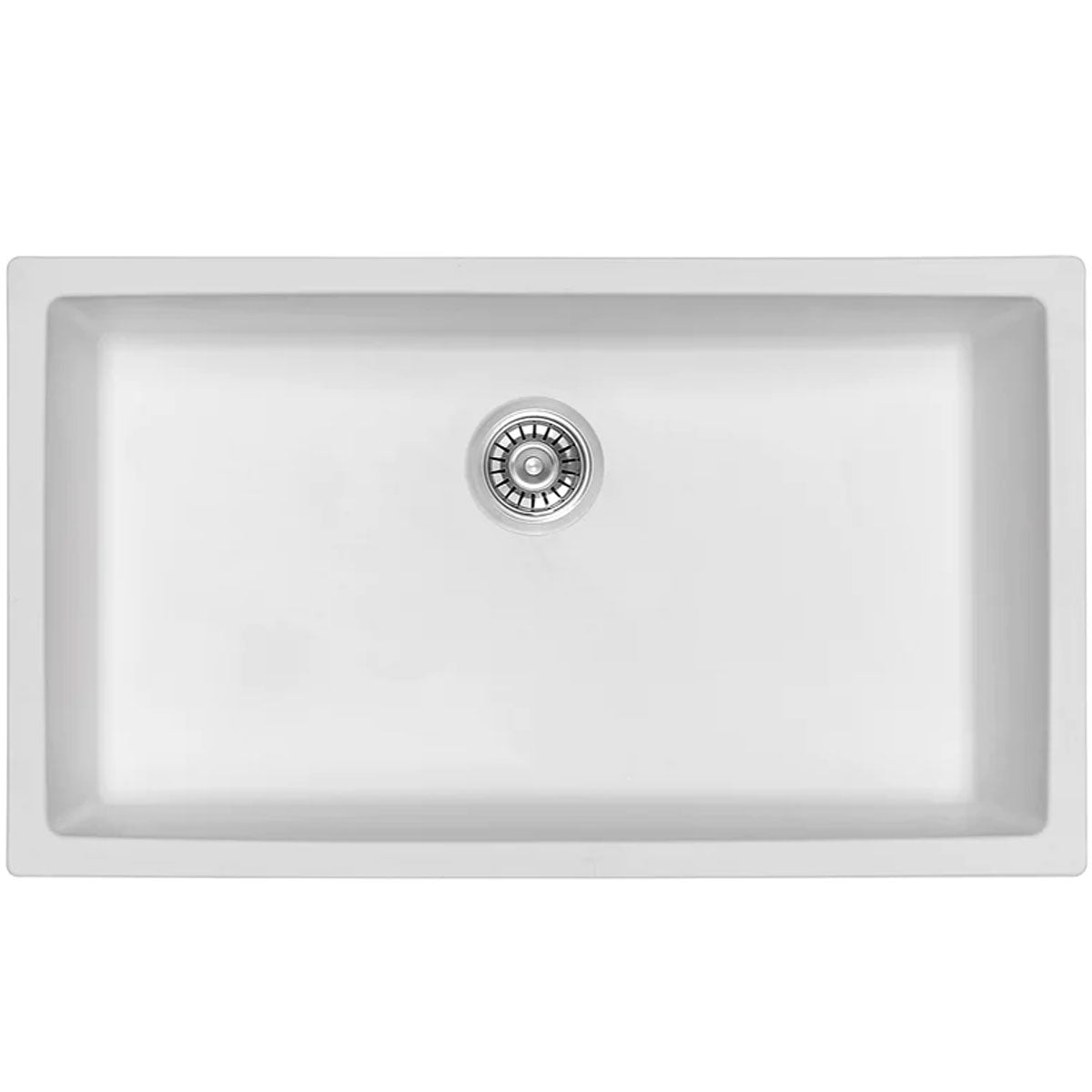The Leroy 33" Granite Composite Undermount Sink combines timeless design with everyday durability, making it a versatile centerpiece for modern kitchens. Crafted from 80% natural quartz and 20% composite acrylic, it delivers the look and feel of natural stone in a sleek matte finish available in black, dark brown, and white.
