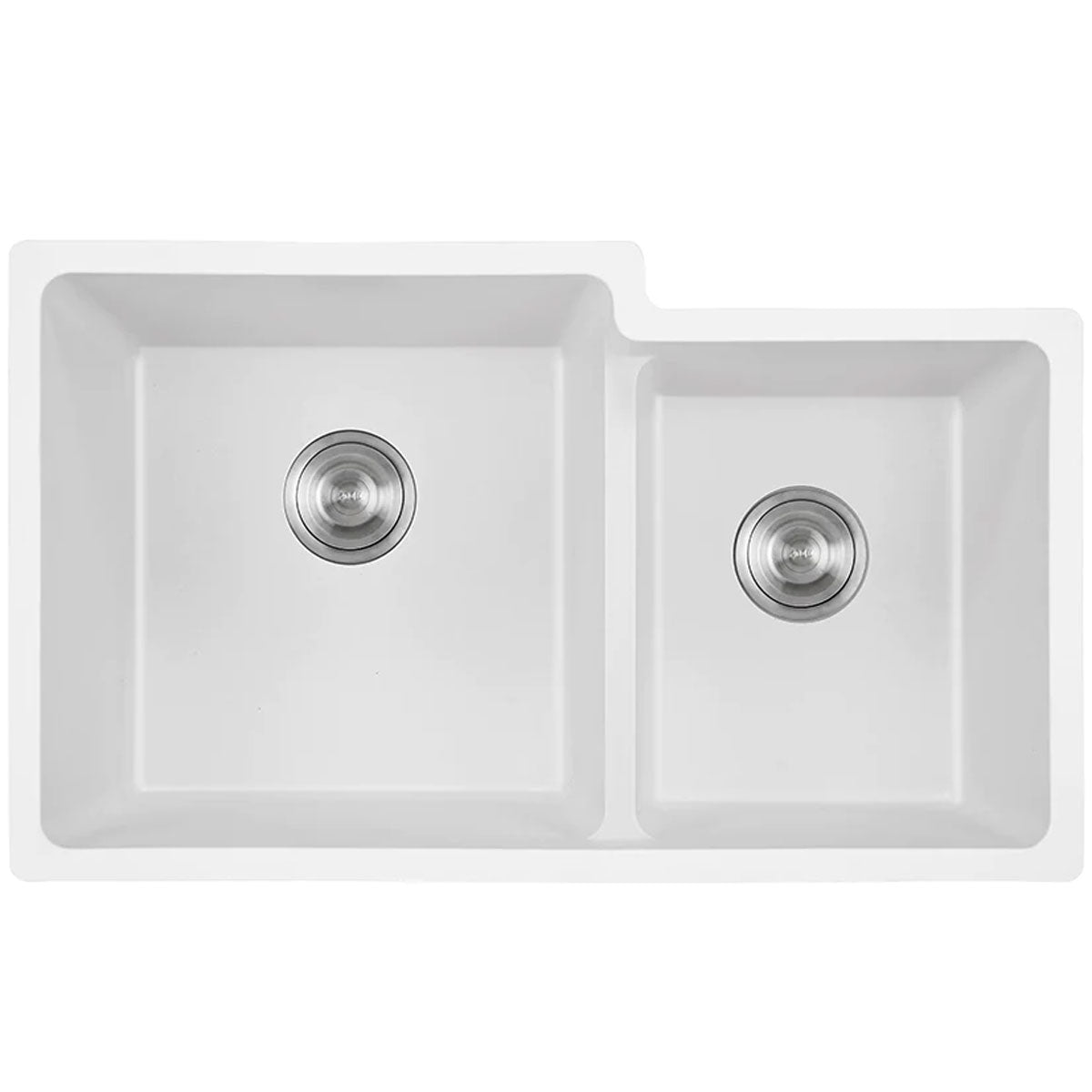 The Harmon 32" Granite Composite Undermount Double Basin Sink combines the natural look of stone with modern performance. Made with a blend of quartz and acrylic, this sink is available in matte White or matte Black, offering durability, elegance, and practical double-bowl functionality for today’s busy kitchens.