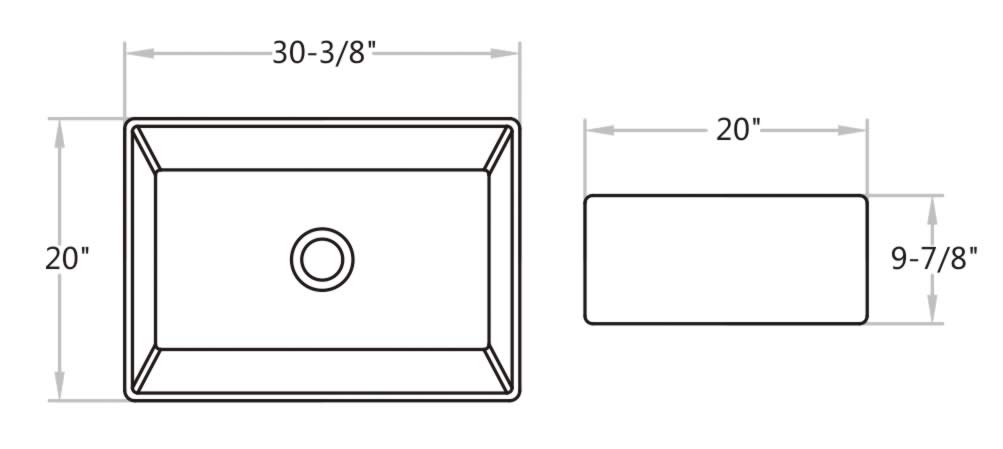 - Exterior Dimensions: 30-3/8" W x 20" D x 9-7/8" H