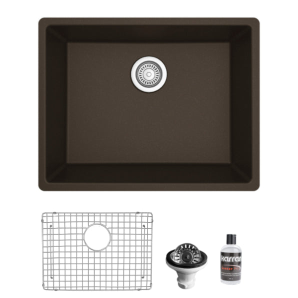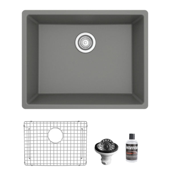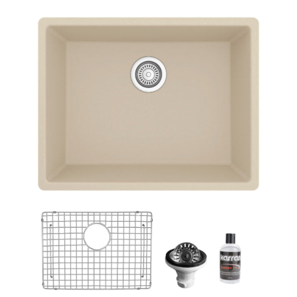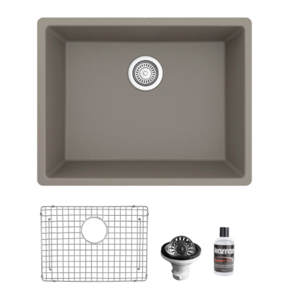 Essence 24" Quartz Composite Undermount Kitchen Sink in Black, White, Grey, Concrete, Brown, and Bisque