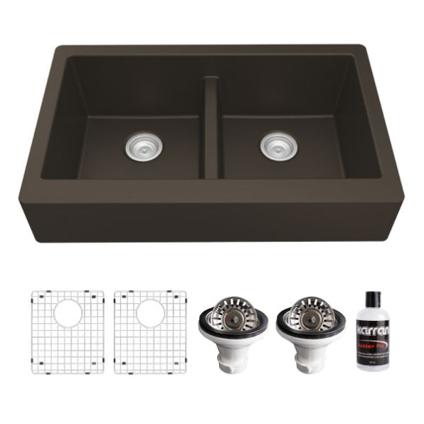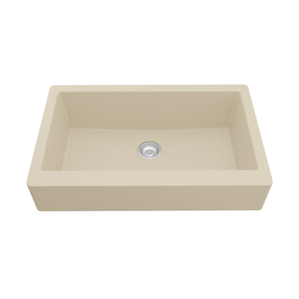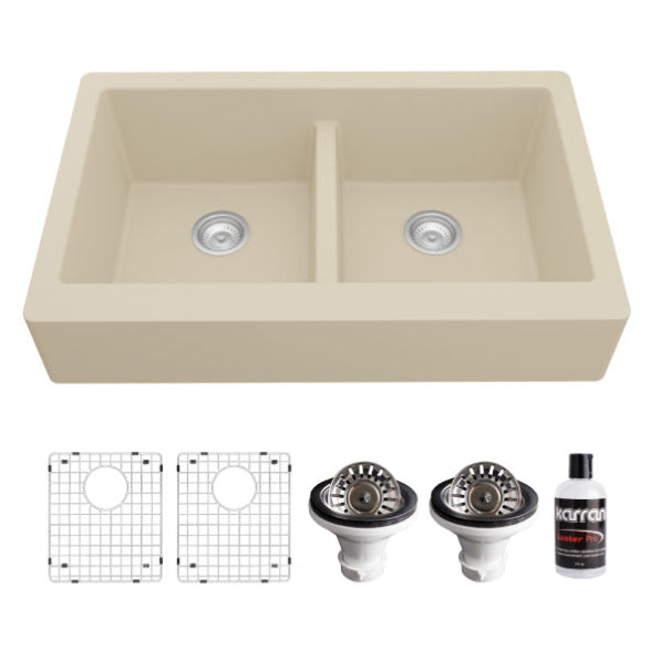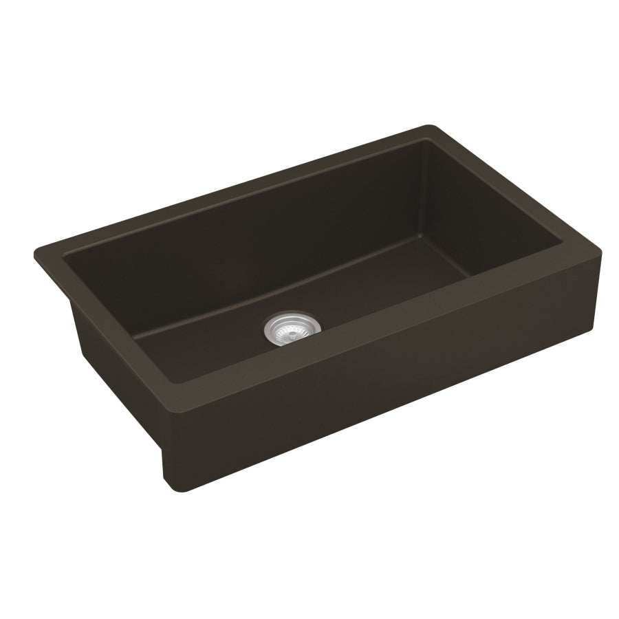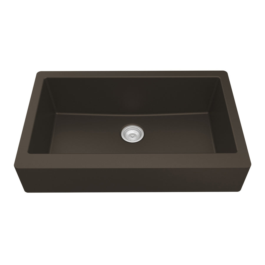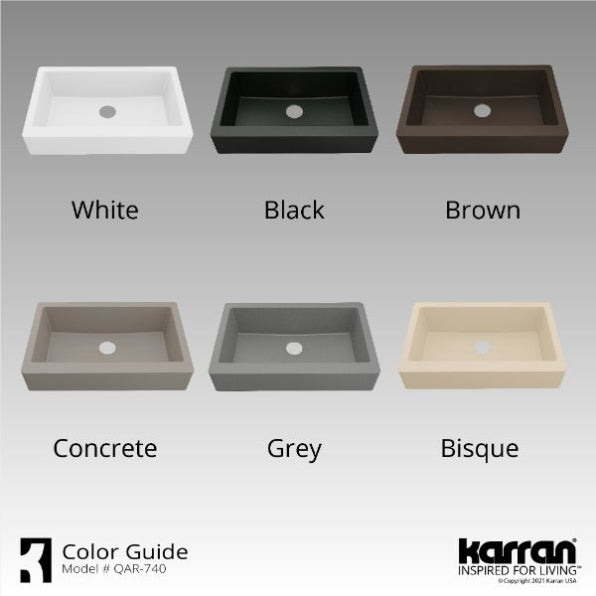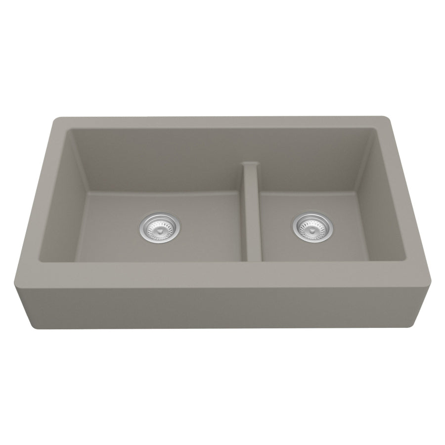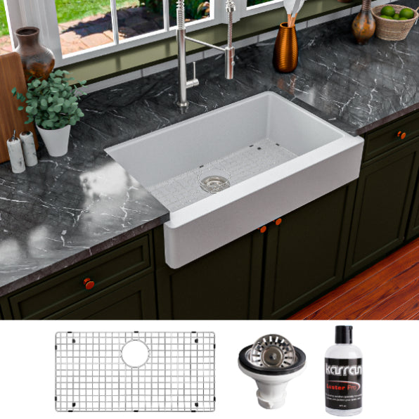 Petrodust 34" Quartz Composite Retrofit Apron Front Kitchen Sink in Black, White, Grey, Concrete, Brown, and Bisque