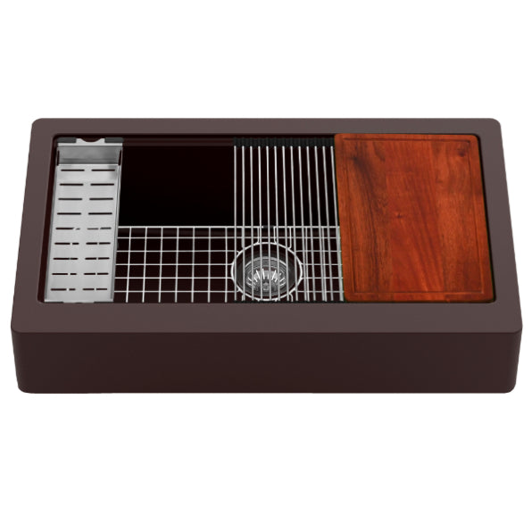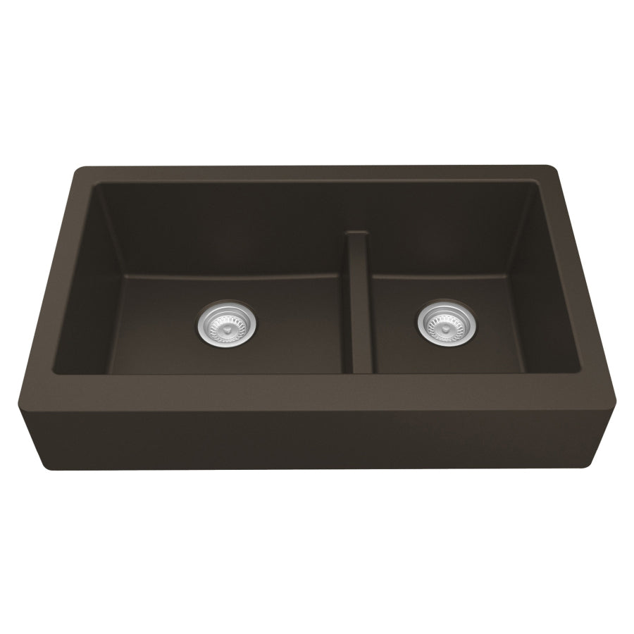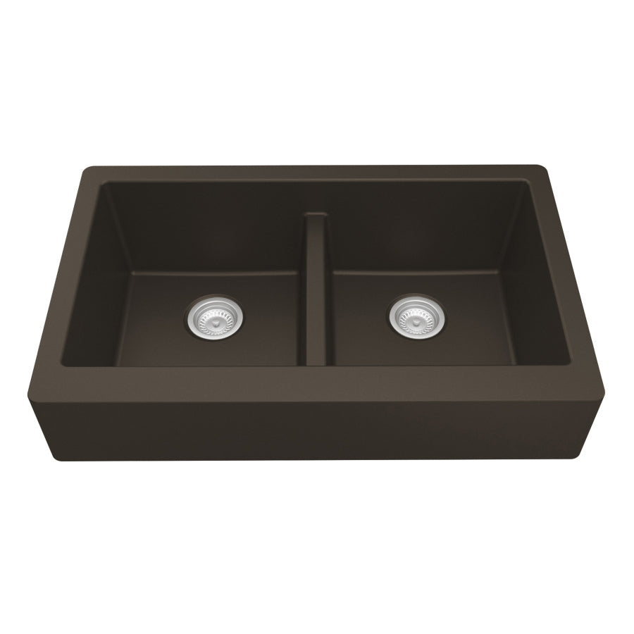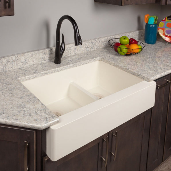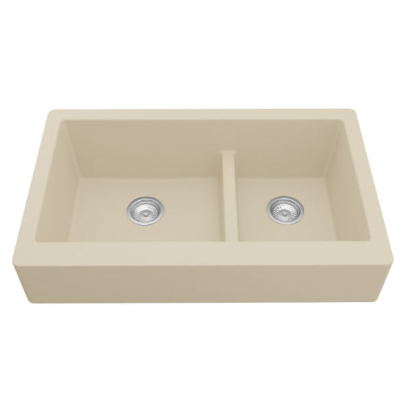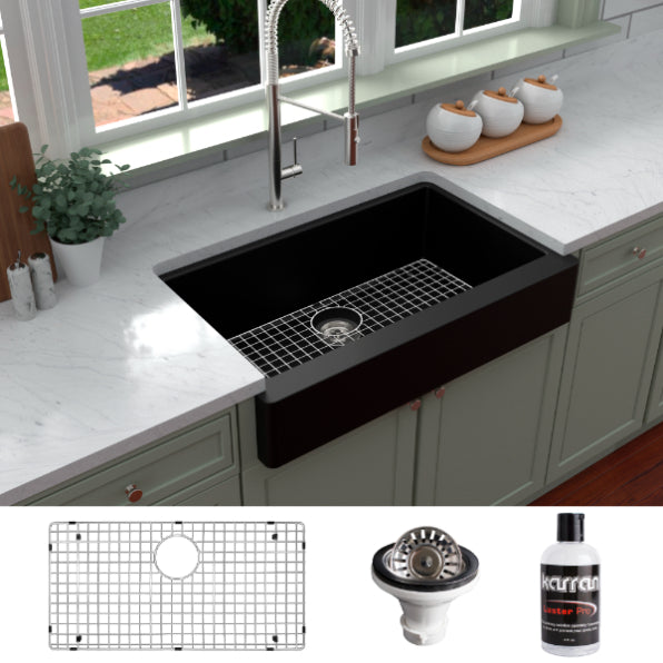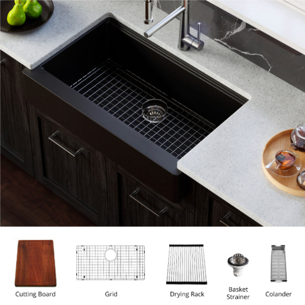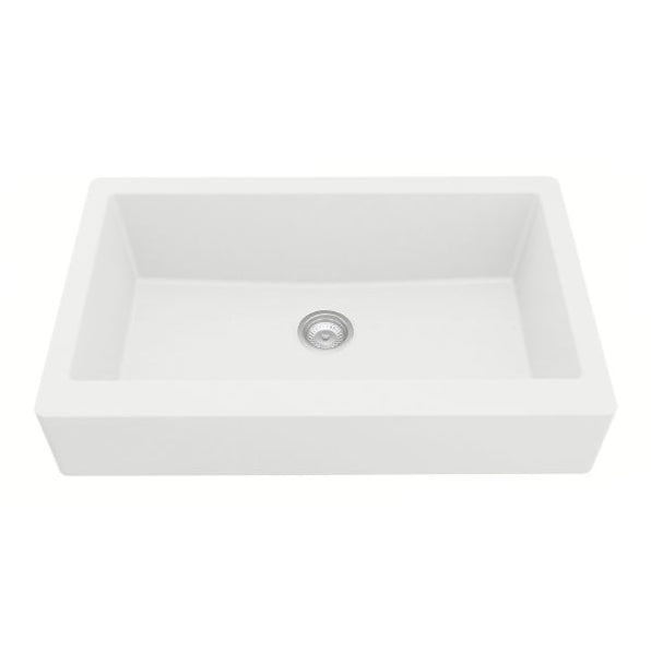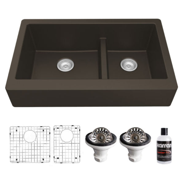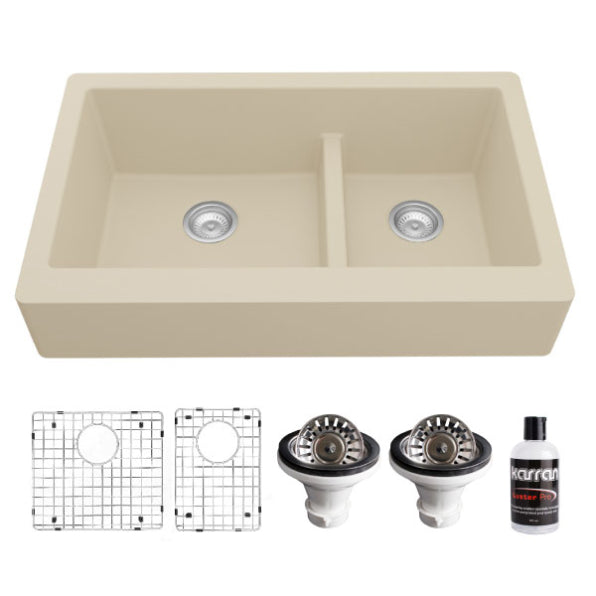 Petrodust 34" Quartz Composite Retrofit Apron Front Kitchen Sink in Black, White, Grey, Concrete, Brown, and Bisque