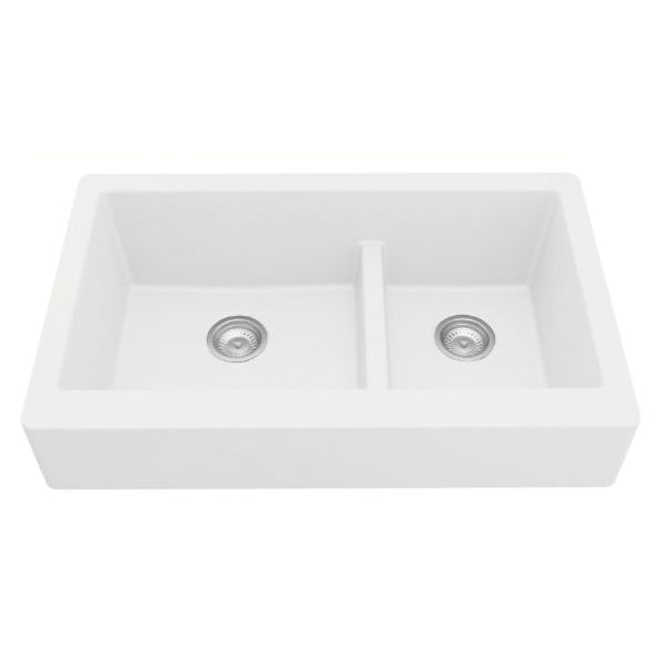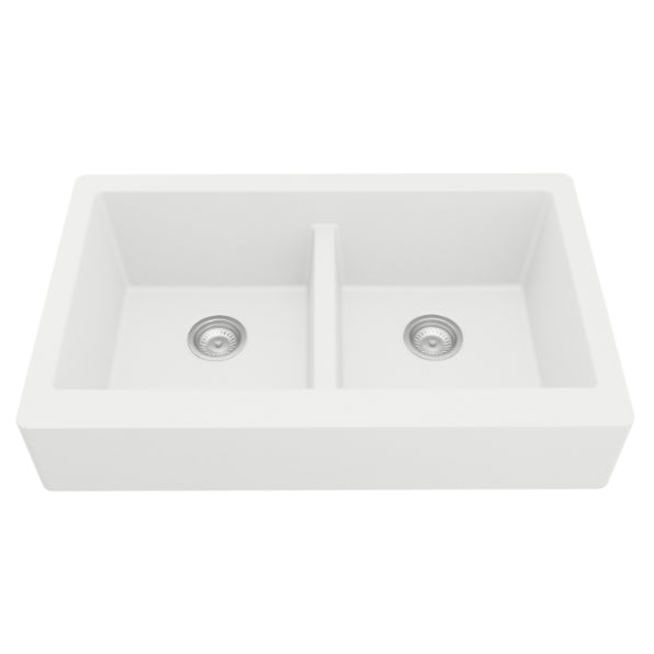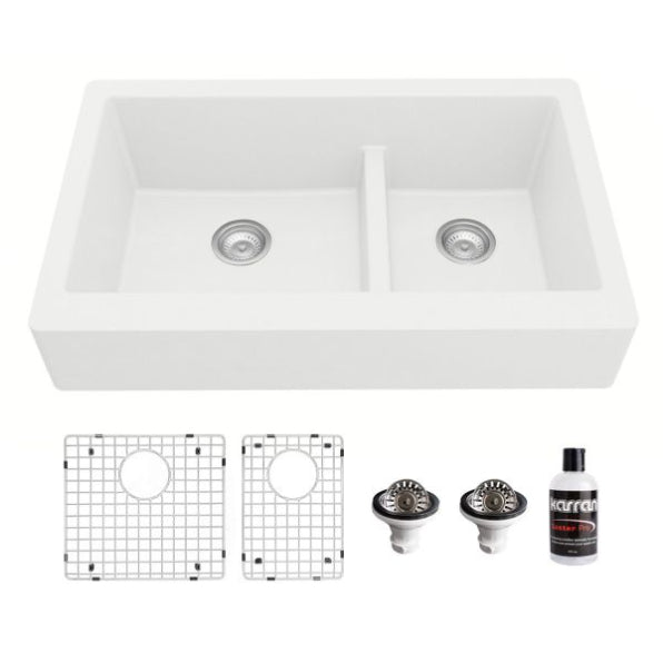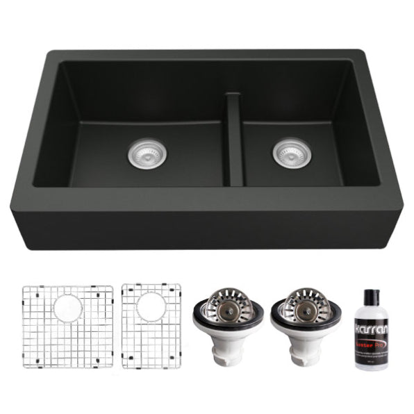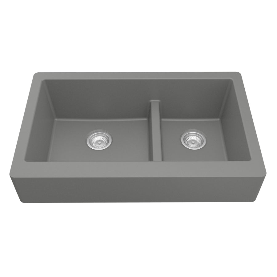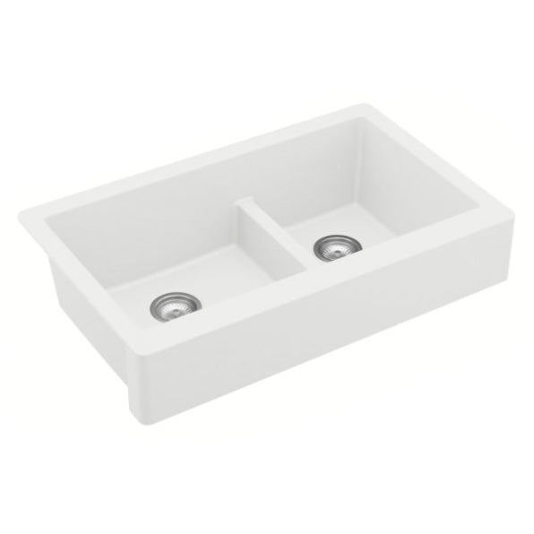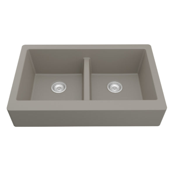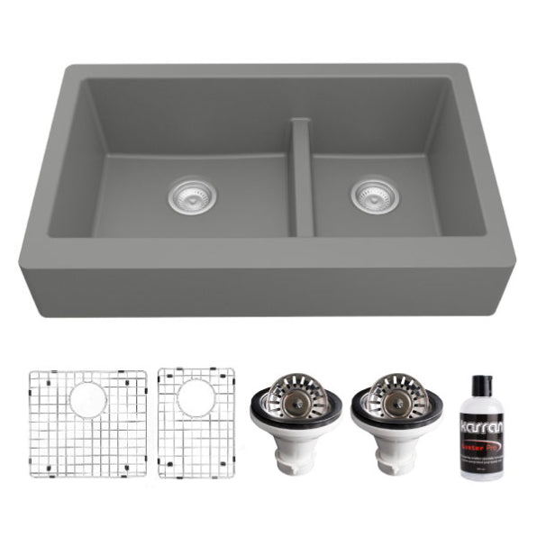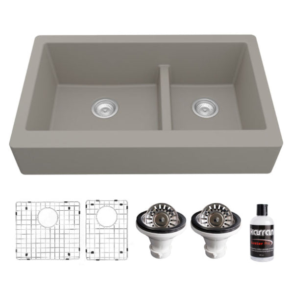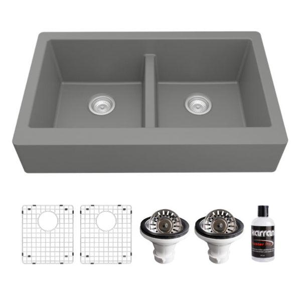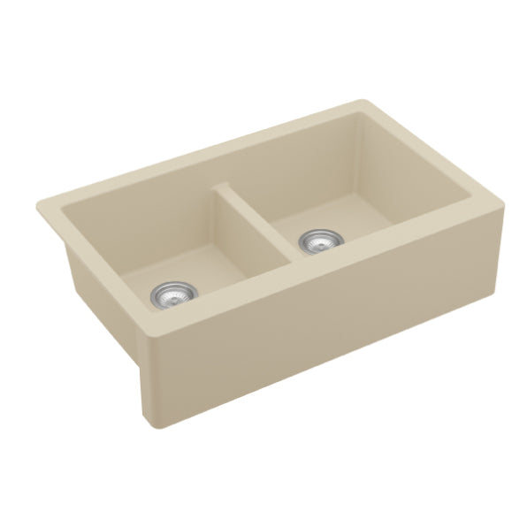 Upgrade your kitchen with the Petrodust 34" Quartz Composite Sink, designed with a bold low-profile apron that fits standard 36" sink bases. Crafted from ultra-durable quartz composite and available in six matte finishes, this farmhouse-style sink offers a choice of single or double bowl configurations. Pair it with optional sink grids or a full workstation setup for added versatility and a refined, modern farmhouse look.