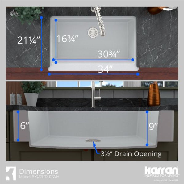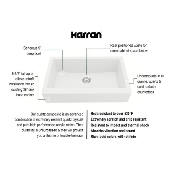 • Retrofit Design: 6.5" apron fits into standard 36" sink base cabinets