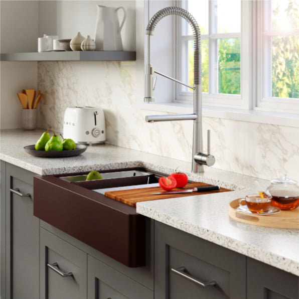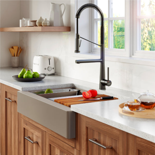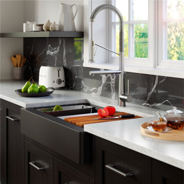 Redefine your kitchen prep zone with a modern farmhouse sink that delivers both performance and style. The Petrodust 34" pairs quartz durability with versatile configurations, creating a timeless centerpiece that elevates daily routines with strength and design-forward character.