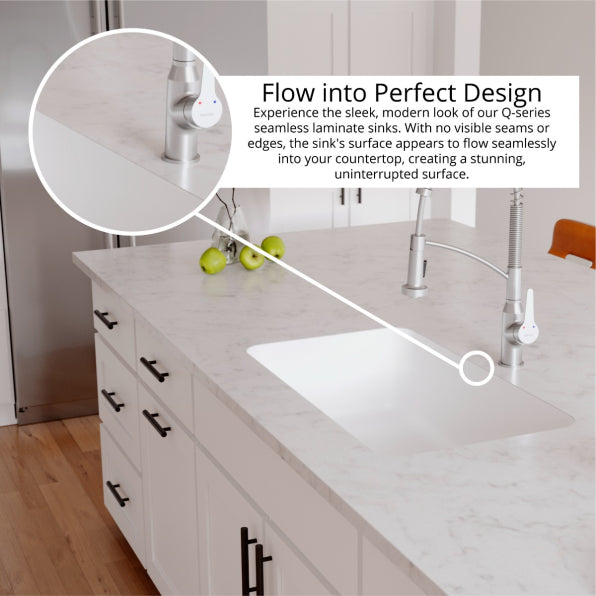 • Seamless Undermount Design: Specialized rim allows clean integration into laminate or solid surface countertops