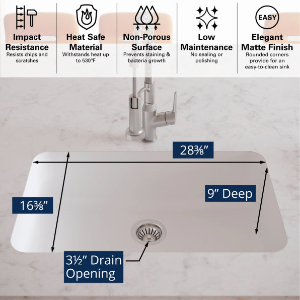 Seamless 31" Quartz Composite Undermount Kitchen Sink