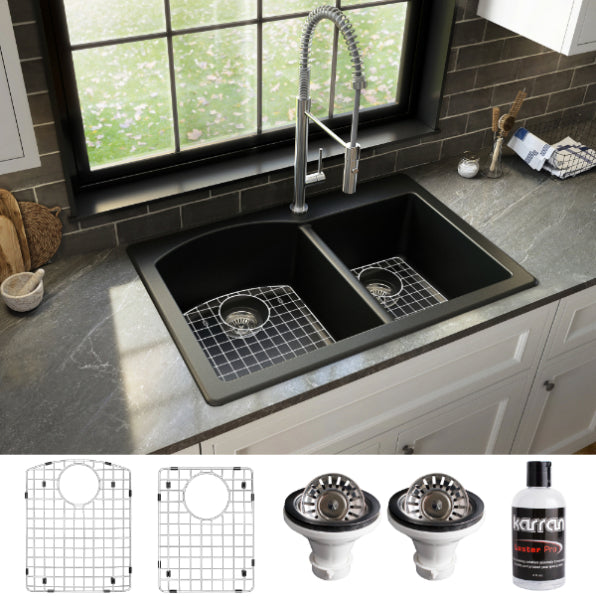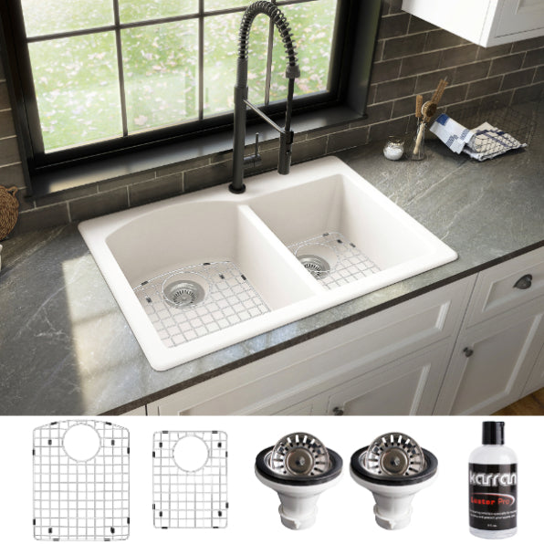 Stonera 32" Quartz Composite Top Mount Double Basin Kitchen Sink