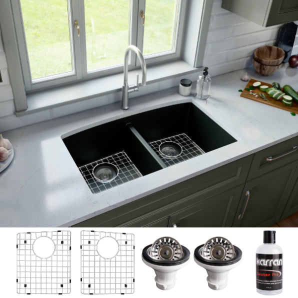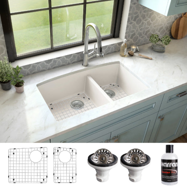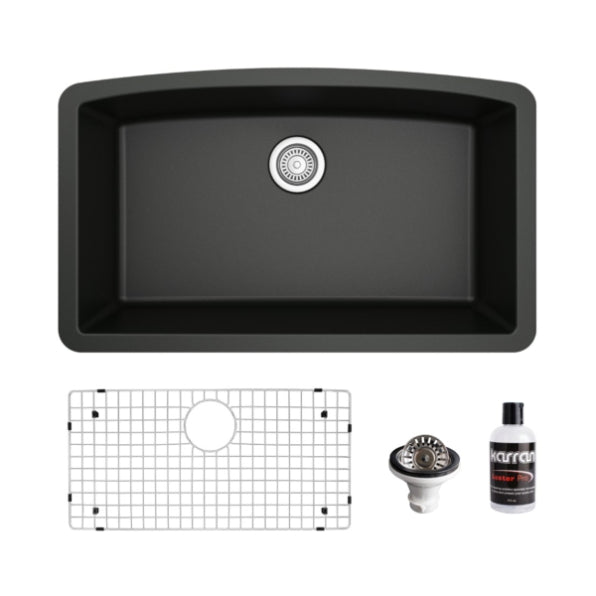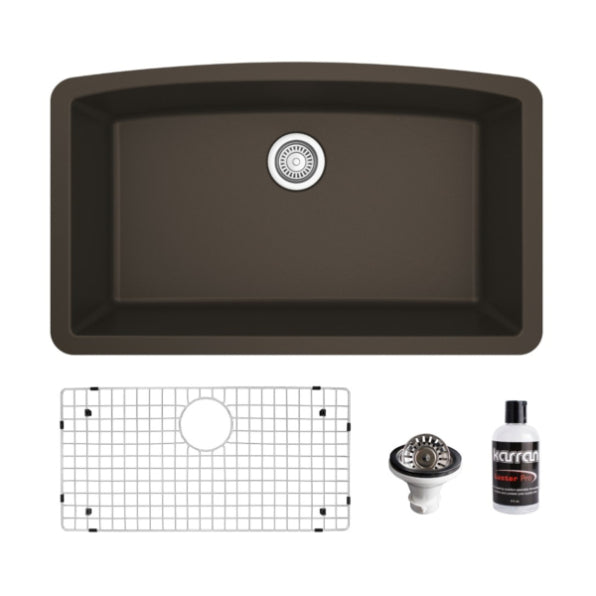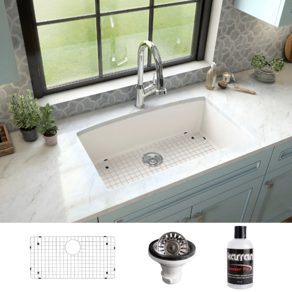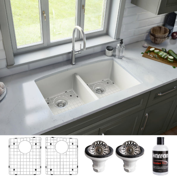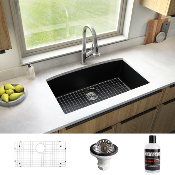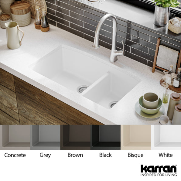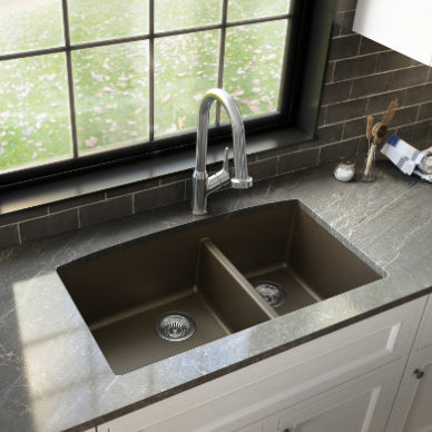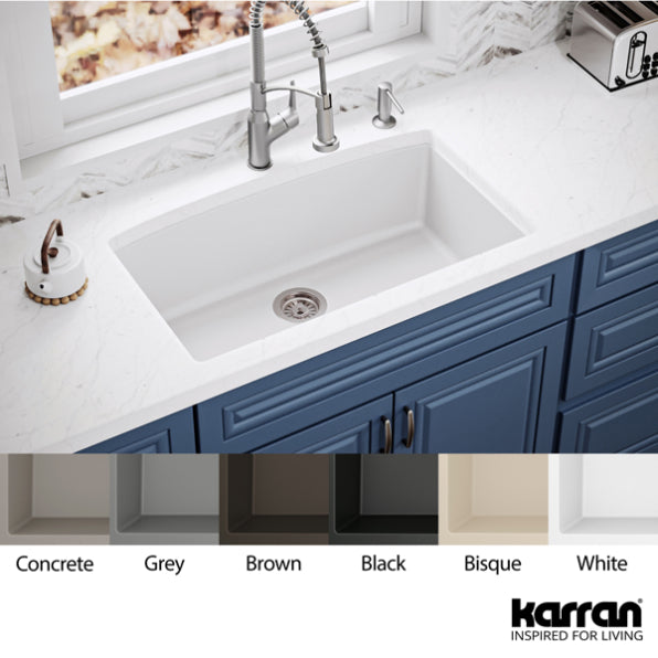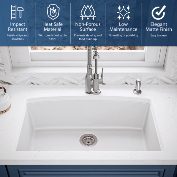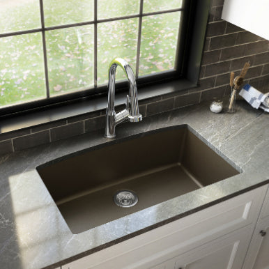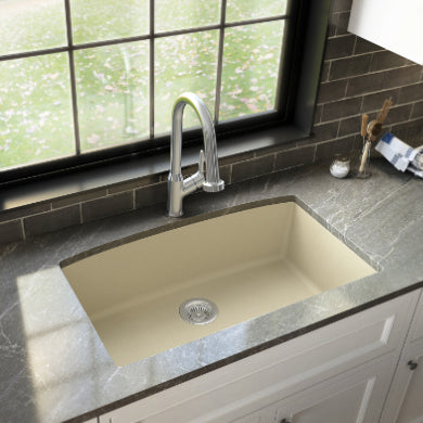 Tudor 33" Quartz Composite Undermount Kitchen Sink in Black, White, Grey, Brown, and Bisque