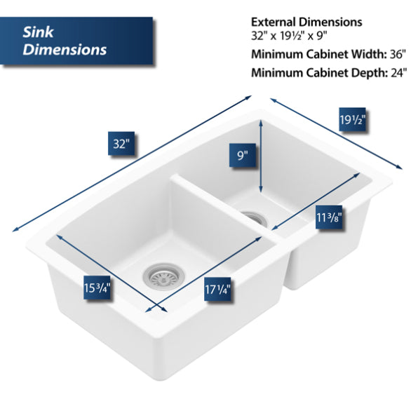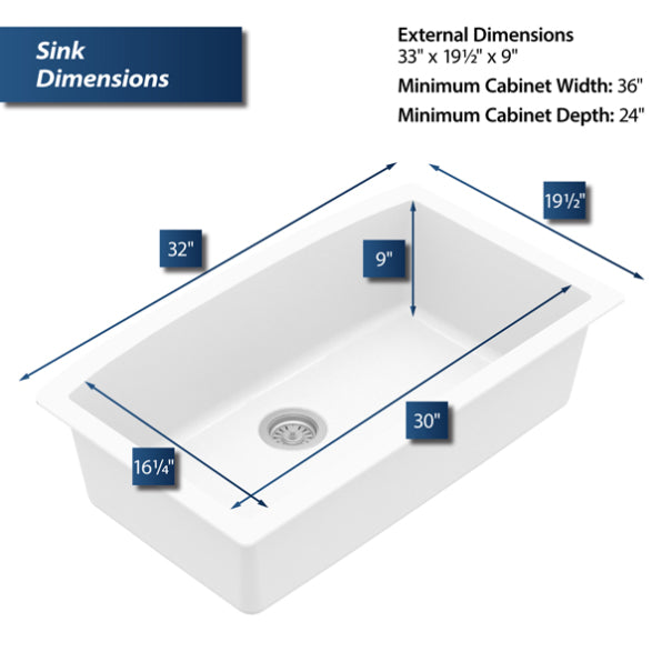 Tudor 33" Quartz Composite Undermount Kitchen Sink