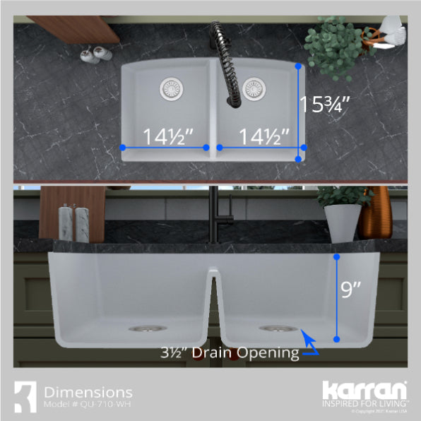 • Double Bowl Even Dimensions: 14-1/2" x 15-3/4" x 9" (each)