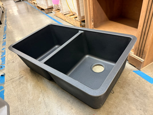 [CLEARANCE] 33" Composite Granite Kitchen Sink, 60/40 Double Bowl