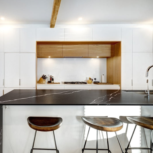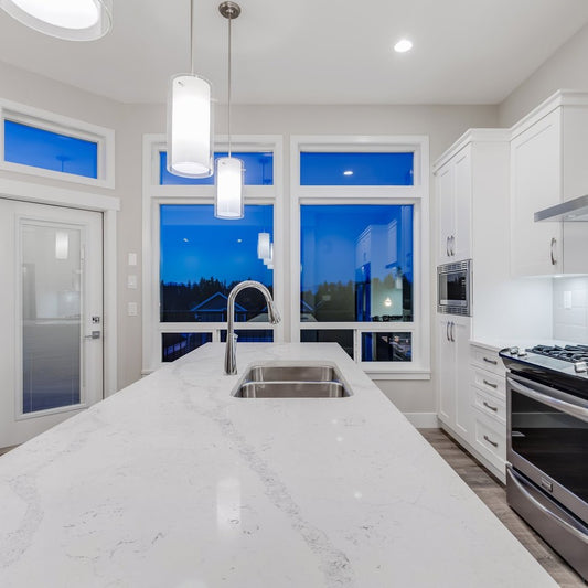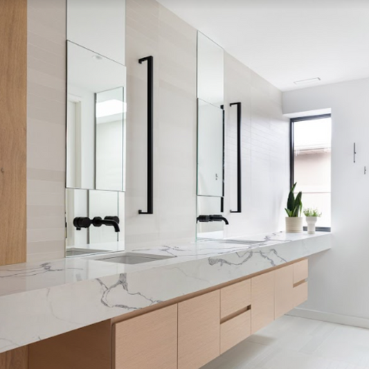 Love this vanity - it was easy to install and looks great. Slight gap in between the two cabinets, but we don't mind too much. The seamless sinks & countertop are beautiful. Drawer space isn't amazing, but the soft close features and deep cabinets make up for it