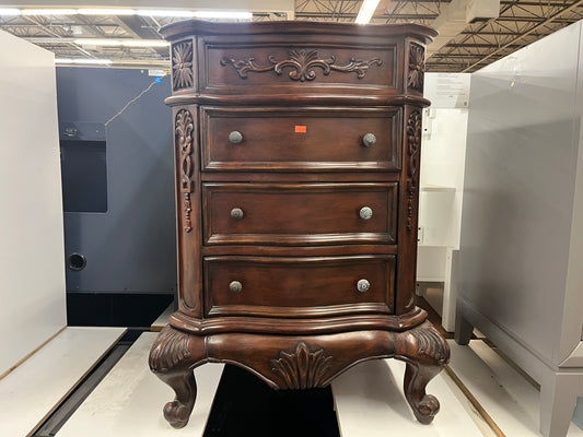 Sturdy, solid White Oak. Beautifully crafted, designed, and finished. Light enough for one person to move and stable enough to stand without wall-mounting (arrives fully assembled)... I chose this as a bathroom linen closet, but also works as a small armoire for the bedroom or living room, or as a kitchen pantry (or for dishes/cutlery/napkins)