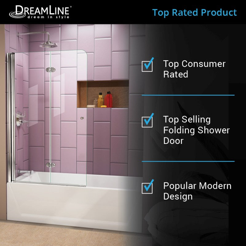 Aqua Frameless Bi-Fold Tub Door with Clear Tempered Glass and Polished Chrome Hardware