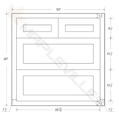 RTA 30"W Kitchen Four Drawer Base Cabinet in Snow White Inset Shaker