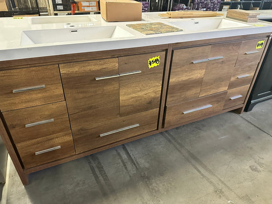 [CLEARANCE] 84" Dolce Freestanding Bathroom Vanity in Rosewood Color [BASE ONLY]