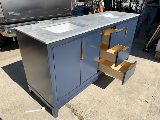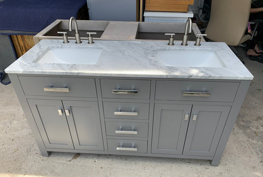 Love this vanity - it was easy to install and looks great. Slight gap in between the two cabinets, but we don't mind too much. The seamless sinks & countertop are beautiful. Drawer space isn't amazing, but the soft close features and deep cabinets make up for it