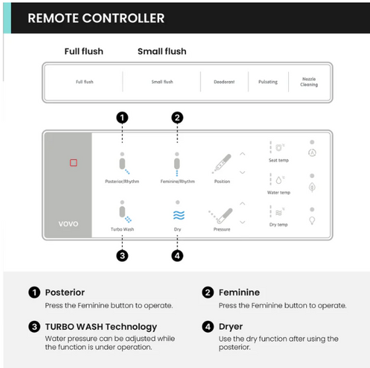 VOVO Smart Bidet Toilet with Auto Flushing TCB-8100B (Made in Korea)