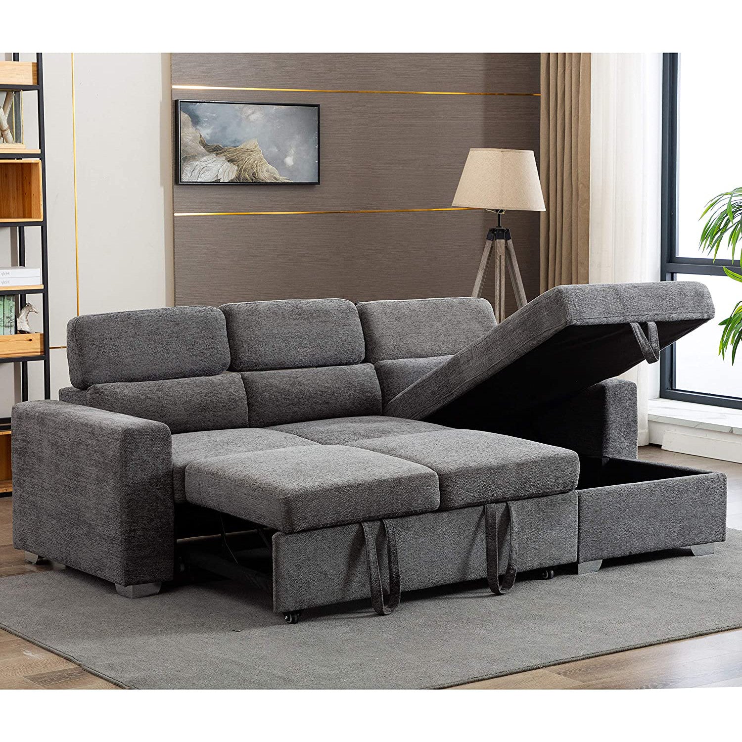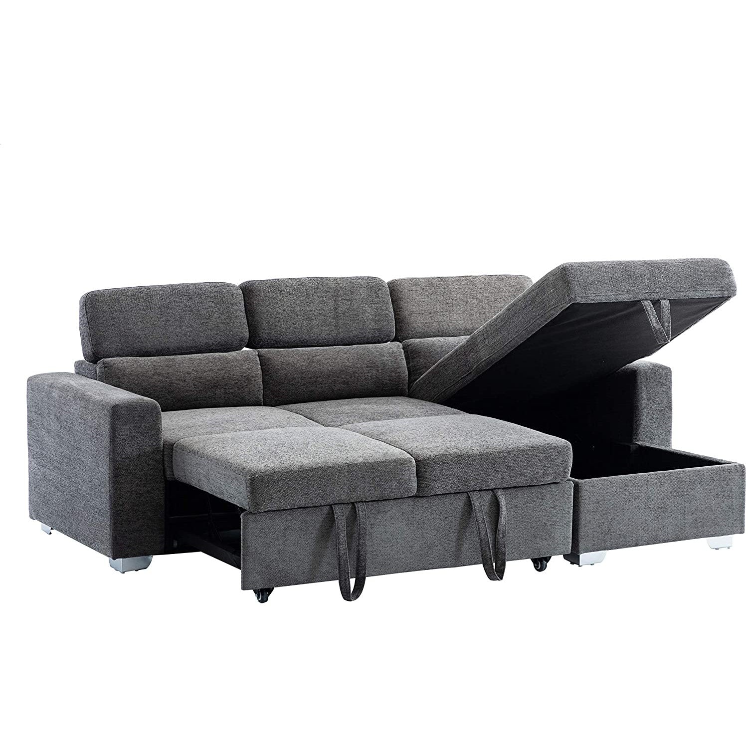 Beautifully crafted sectional sofa bed with a built-in storage compartment in the Chaise lounge.