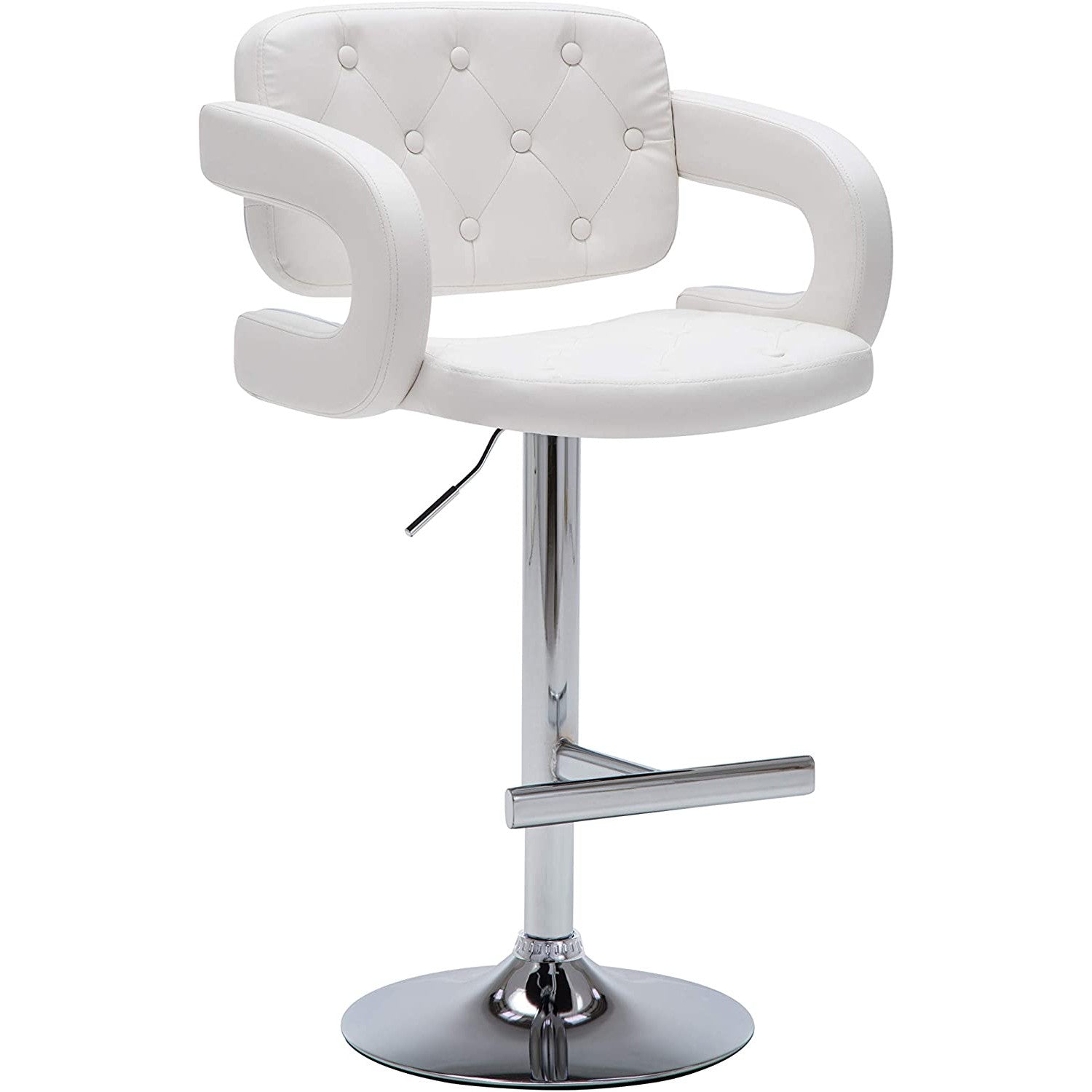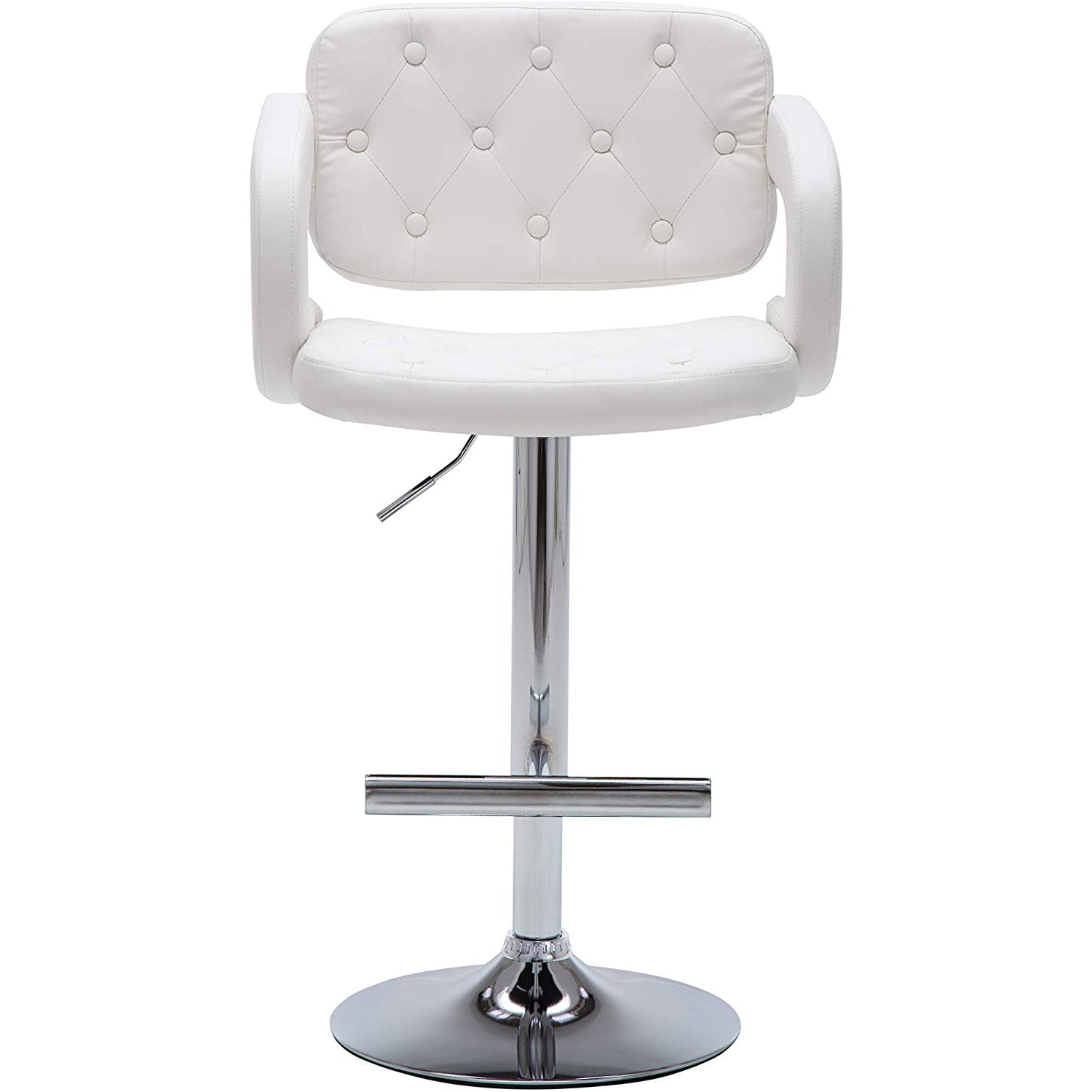 White leatherette and plush cushioning makes for a comfortable sit. Back cushion features button-tufted detailing