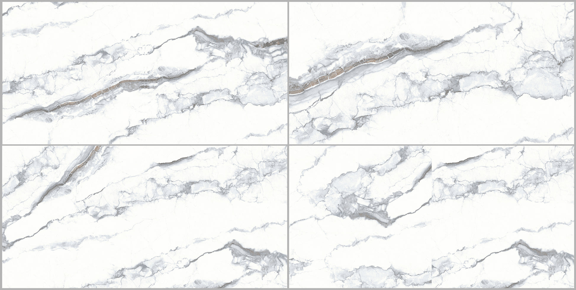 Marmol Harlequinn Porcelain Tile in Matte and Diamond-Polished Calacatta Finish