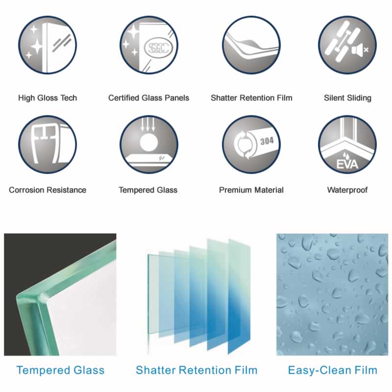 - Semi-Frameless Clarity: 1/4-inch (6mm) thick certified tempered glass with shatter-resistant and water-repellent film