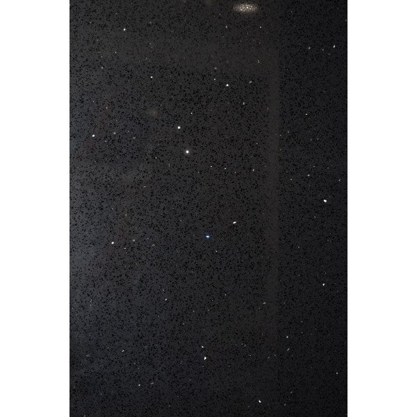 Infuse your space with the dazzling brilliance of Black Sparkle Polished Quartz, a distinguished choice that combines radiant aesthetics with the robust durability of engineered stone for any refined interior project. This exquisite material features a deep black background generously infused with reflective flecks, creating a shimmering and dynamic visual that adds depth and character to any design. Its non-porous surface not only ensures effortless cleaning but also eliminates the need for sealing, making it a highly practical and hygienic selection for both bustling residential kitchens and demanding commercial environments. Black Sparkle Quartz delivers a consistent color and pattern across each slab, guaranteeing a seamless and elegant finish for installations of any scale.